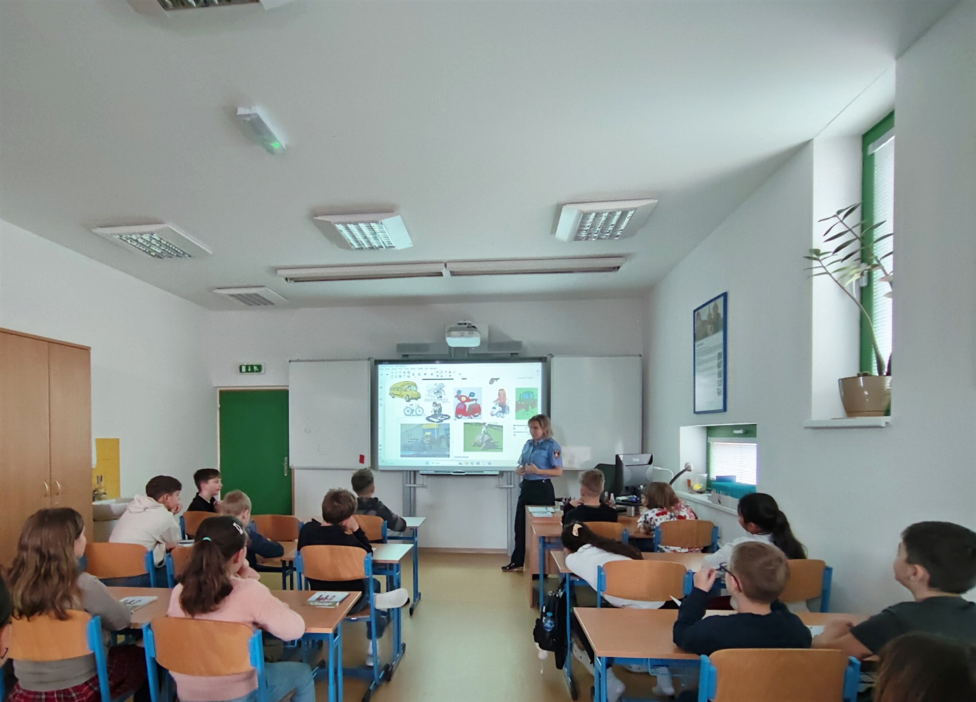 9. prosince jsme jeli do Třebše na besedu s Městskou policií. Tématem setkání byly dopravní předpisy, se kterými jsme se seznamovali. Na jaře nás totiž čekají jízdy na kole po dopravním hřišti.