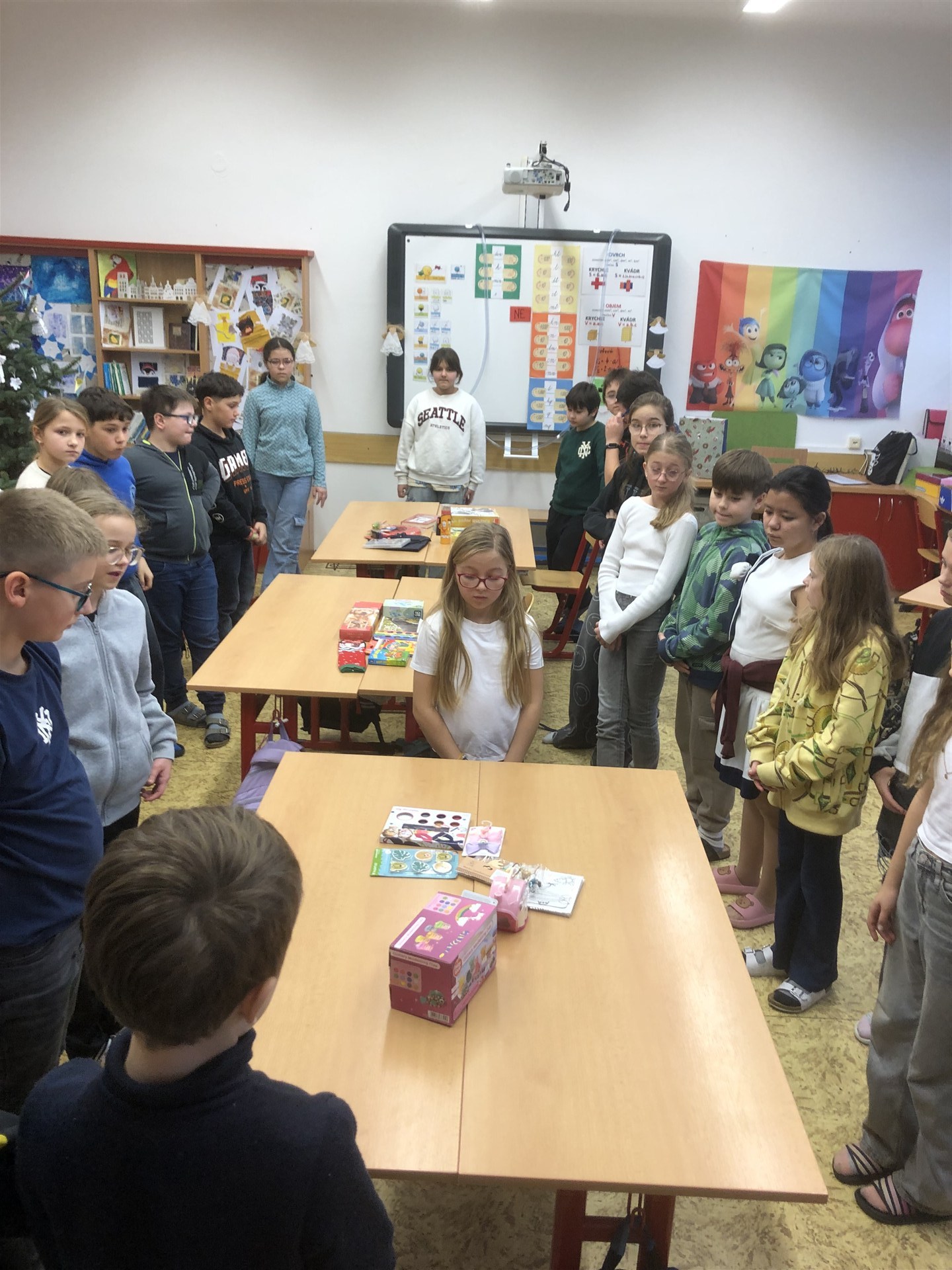 Za třídu jsme zvládli vybrat a nakoupit dárky pro tři děti - holčičku 3 - 4 roky, kluka 9 - 10 let a holku 9 - 10 let.
