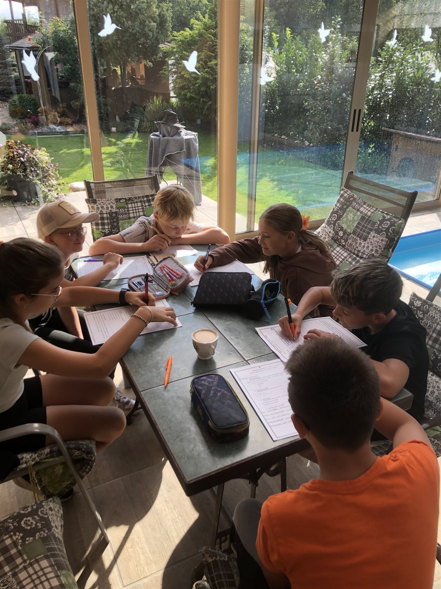 O to více jsme si ale uzili zábavný den u rodičů našich spolužáků. Týmy si zahrály famfrpál, užily si koupání ve slaném bazénu, vyráběly si slizová mýdla a taky se učily.