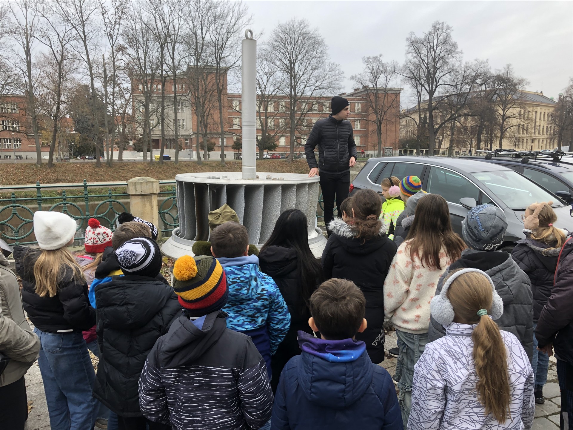 20. 11. 2025 jsme se i s 5. B vydali na exkurzi do malé vodní elekrárny Hučák v krásné secesní budově na Labi v Hradci Králové.