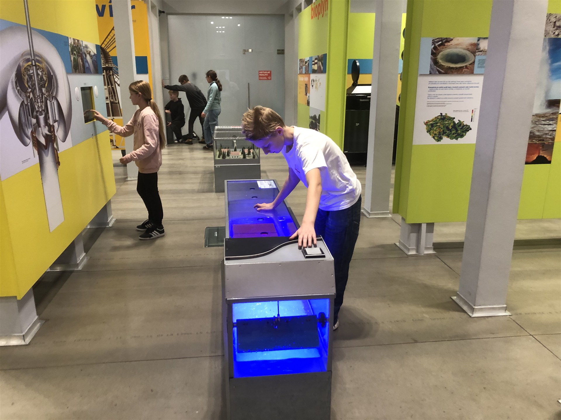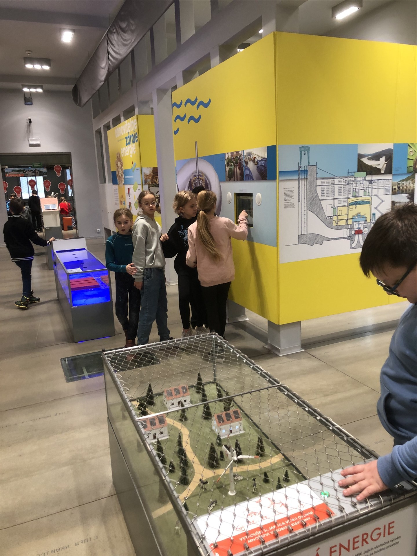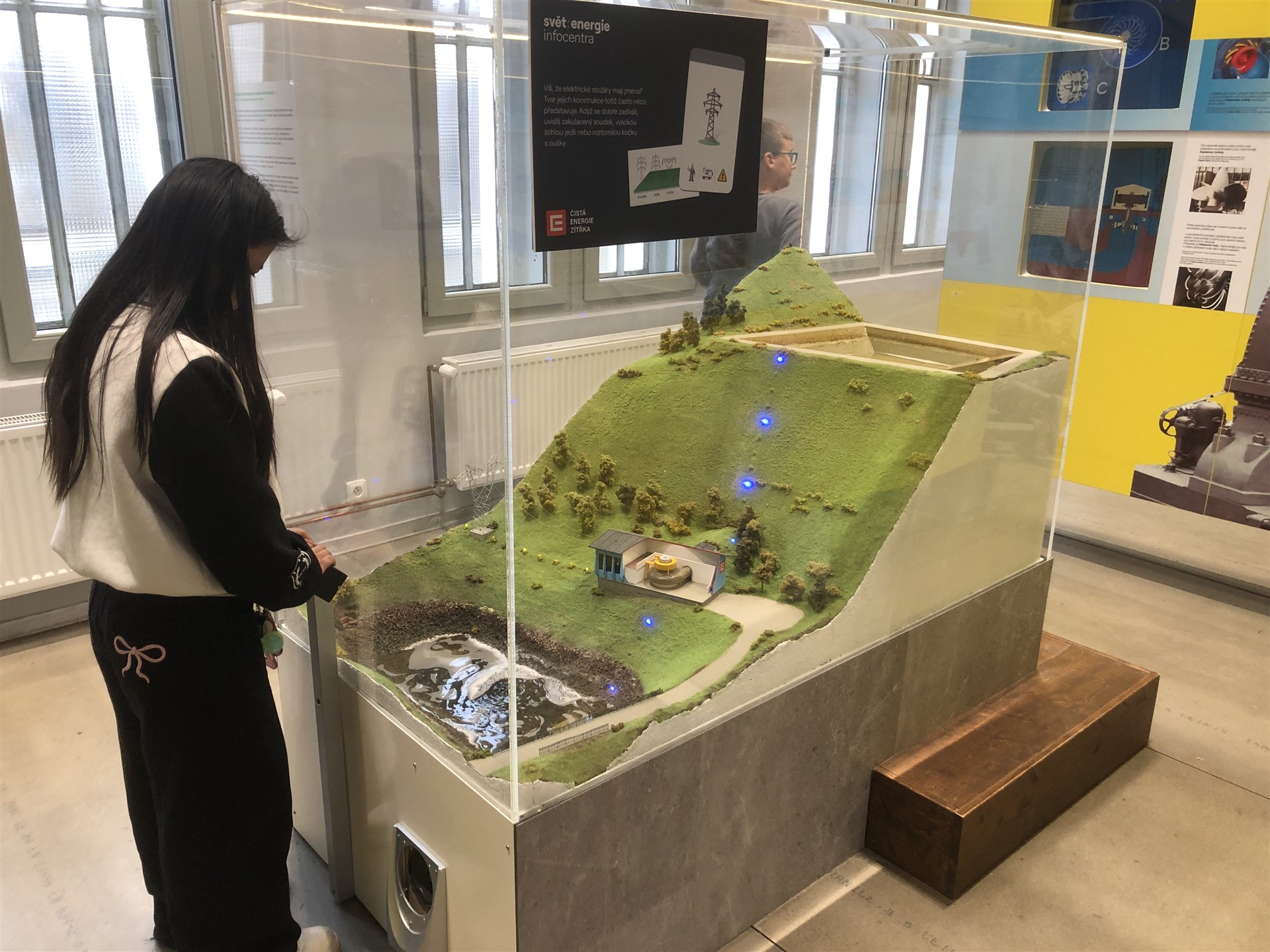 V infocentru nám bylo představeno, jak se dá k výrobě elektřiny využít síla vody, větru, slunce, ale také biomasy a geotermální energie.