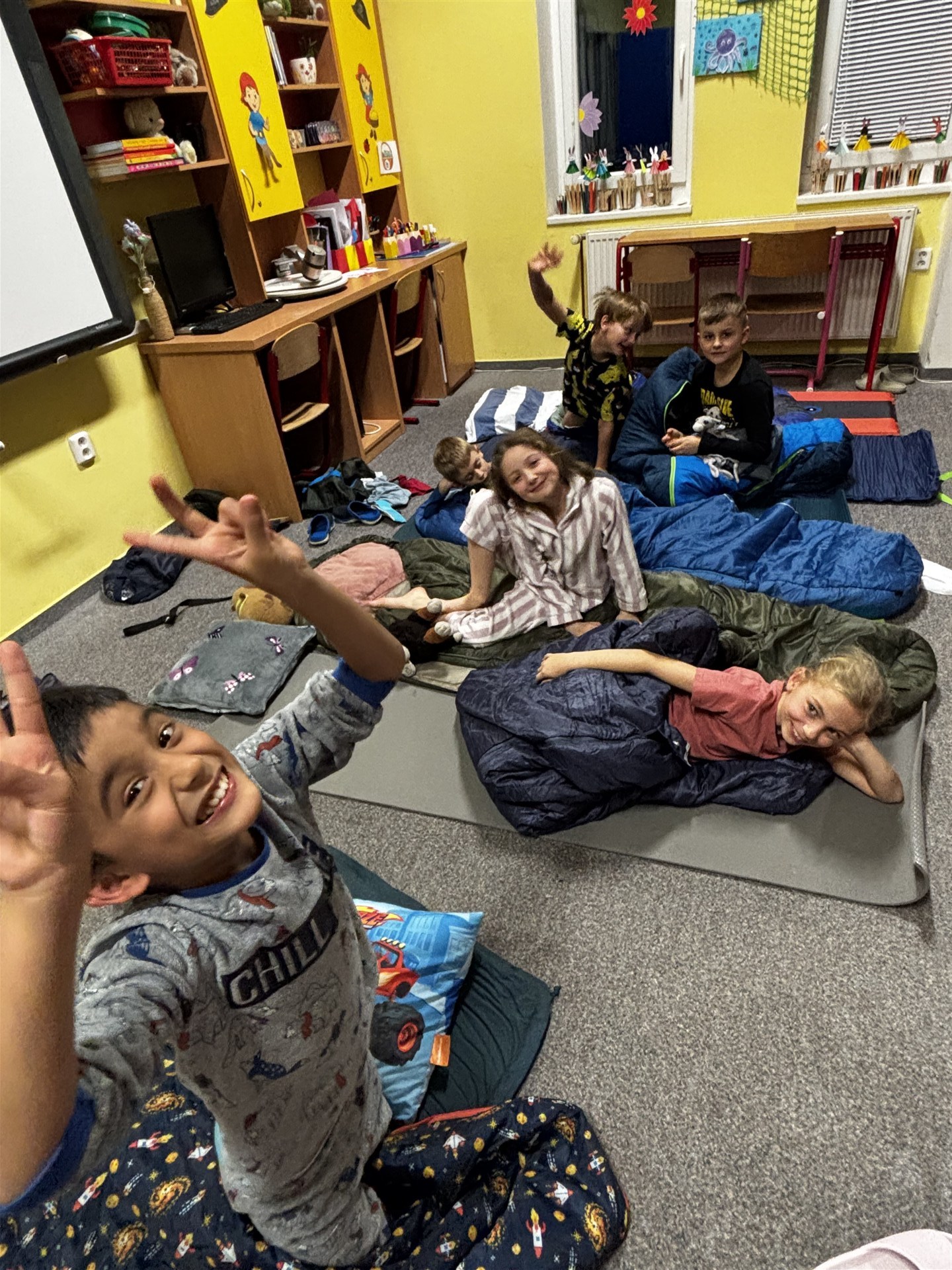 Dne 27. 3. 2026 jsme se sešli s dětmi na Noc s Andersenem. Tentokrát to bylo zaměřené na spisovatele Walta Disneyho a jeho pohádky. Nejprve si děti vyluštily křížovku dle otázek z pohádek. Potom následovalo plnění úkolů – chytání rybiček, přebírání korálků, skákání na skákadlech, házení raketek do kruhu. Po absolvování těchto úkolů se děti občerstvily pizzou. Po dobré večeři jsme šli hledat po celé škole pohádky a obrázky z pohádek, které musely složit. Na závěr si všichni statečně prošli stezku odvahy. Noc s Andersenem se dětem moc líbila.