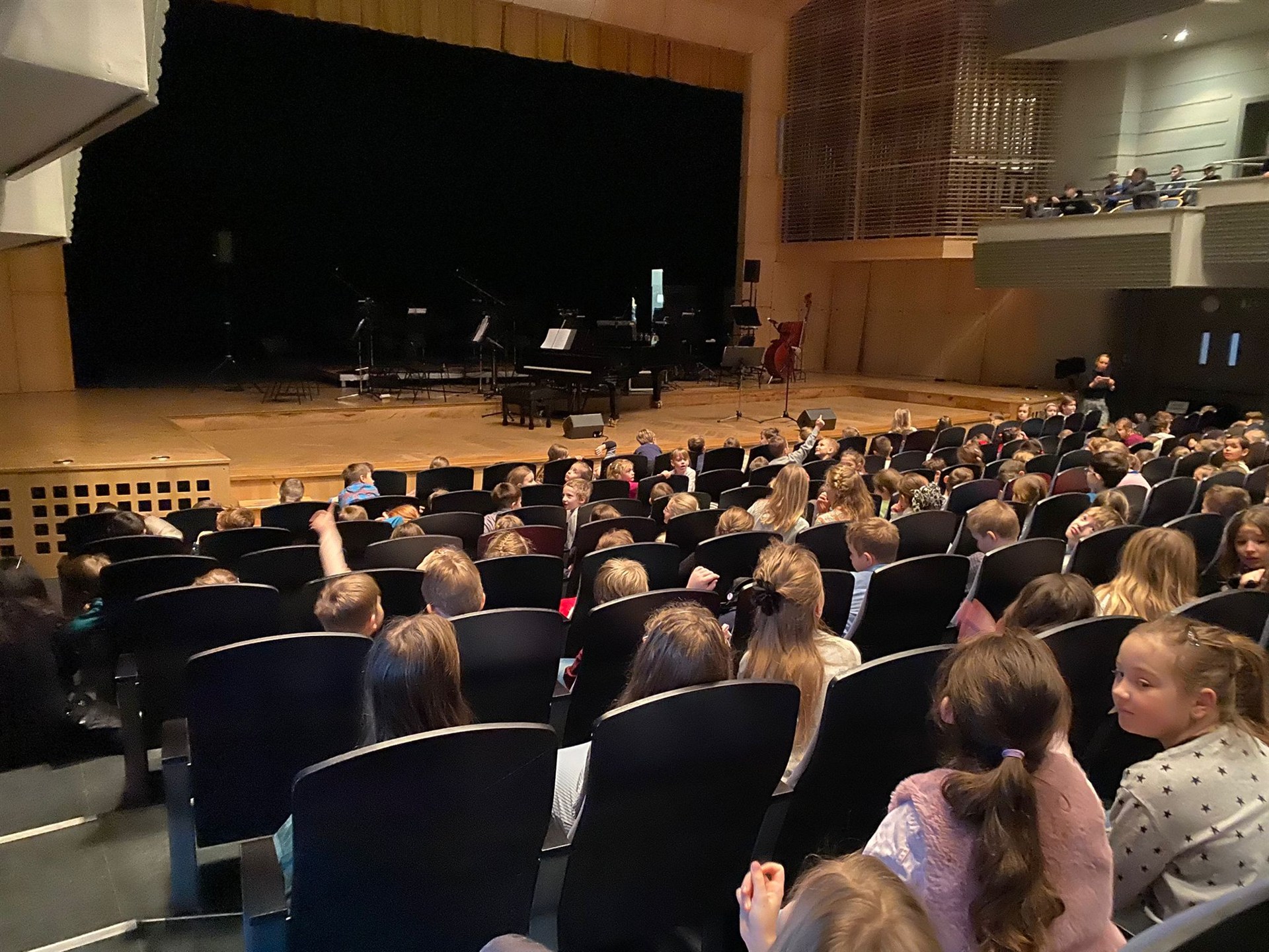 Ve středu jsme vyrazili do Filharmonie HK, kde jsme zhlédli program Pocity v hudbě. Celou akcí nás provázela dvojice kamarádů a jejich teta, která byla dirigentkou orchestru. Kamarádi nám ukázali, že orchestr nemusí hrát jen vážnou hudbu, ale i hudbu moderní a populární, kterou známe z filmů a pohádek.
