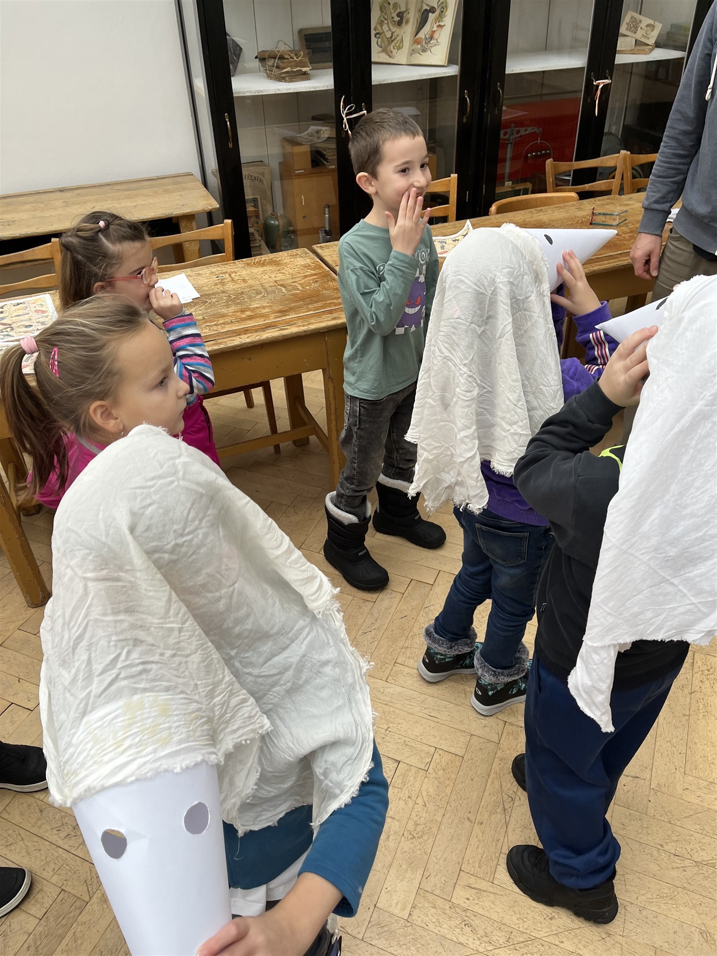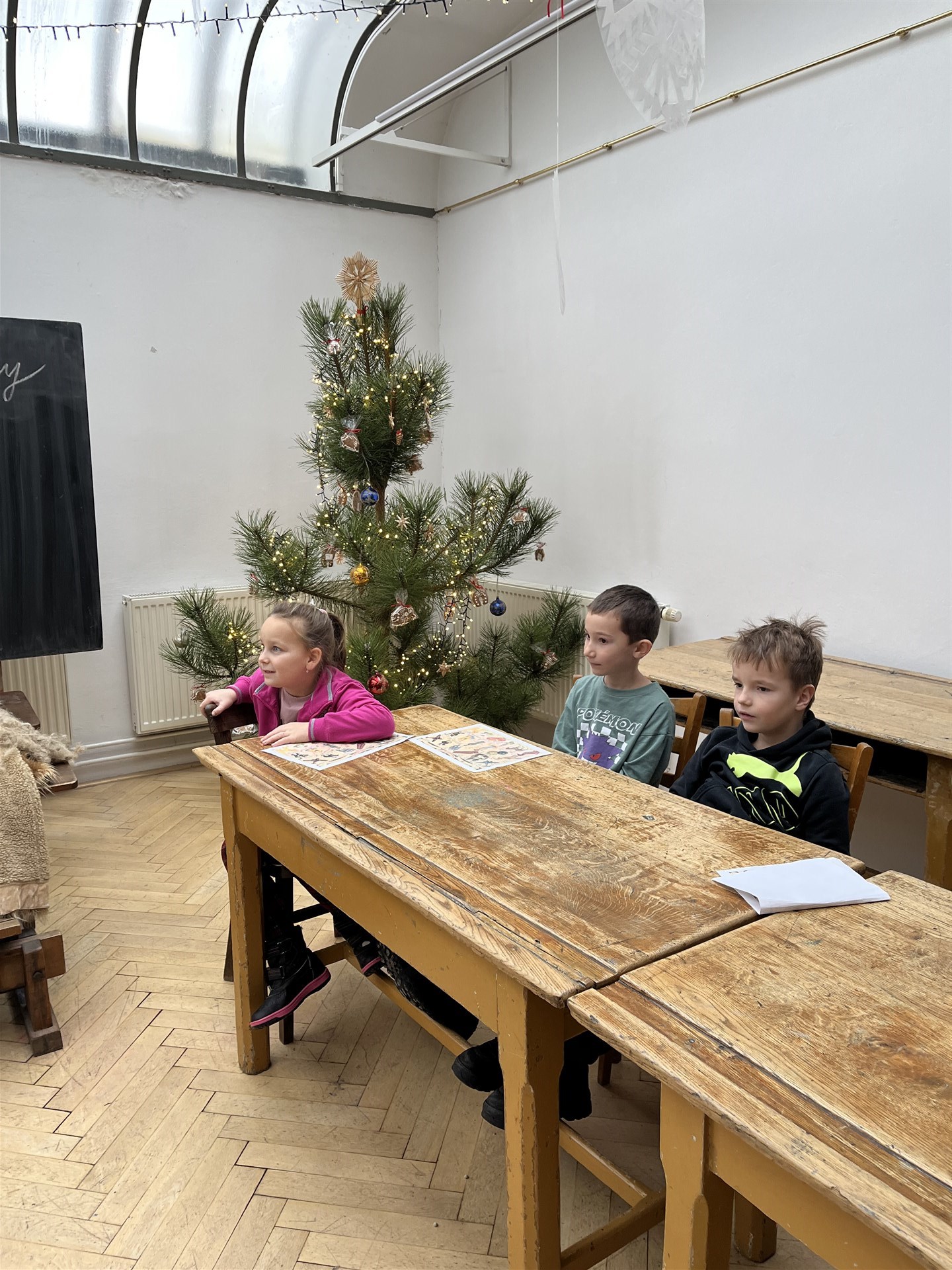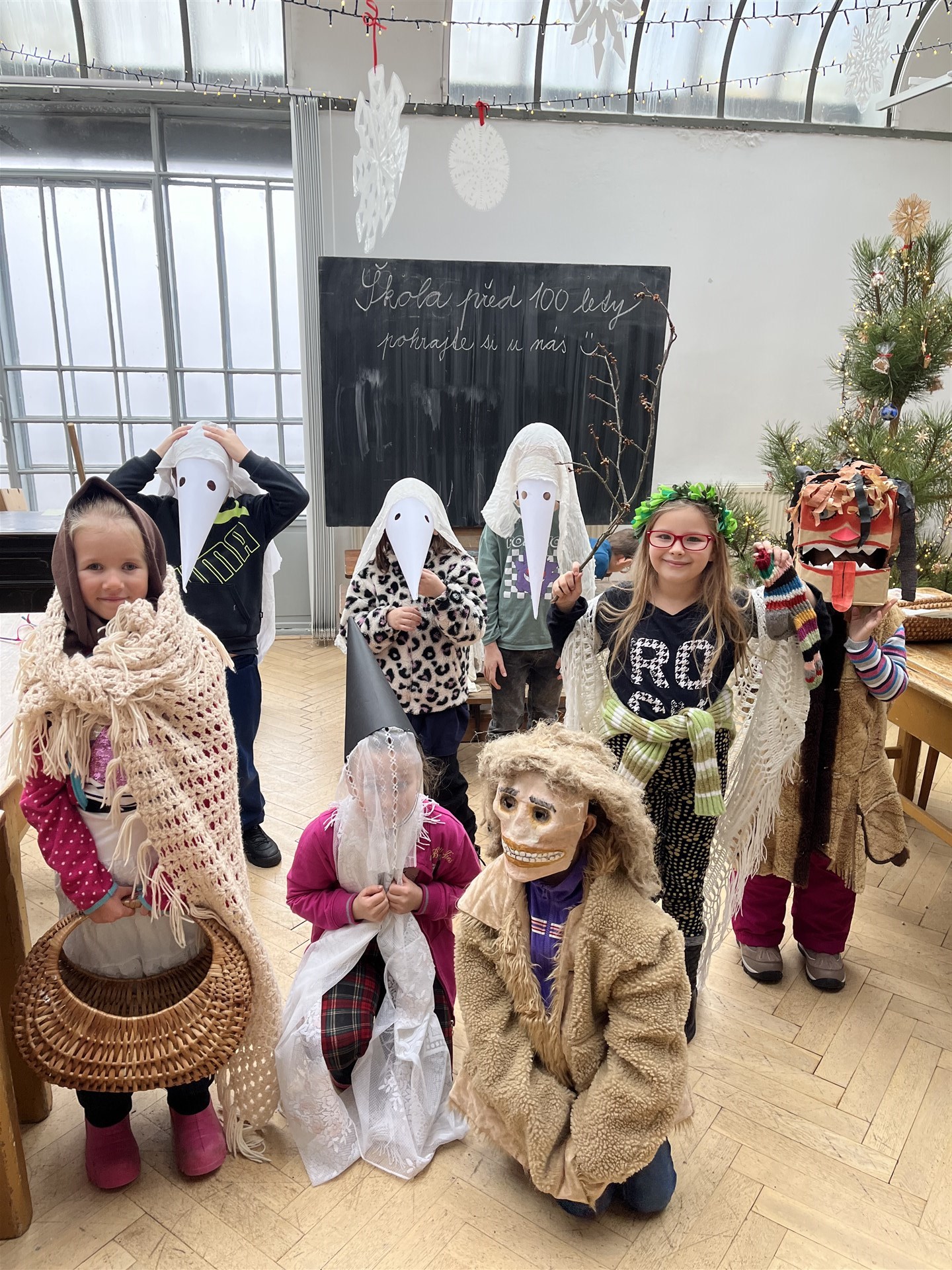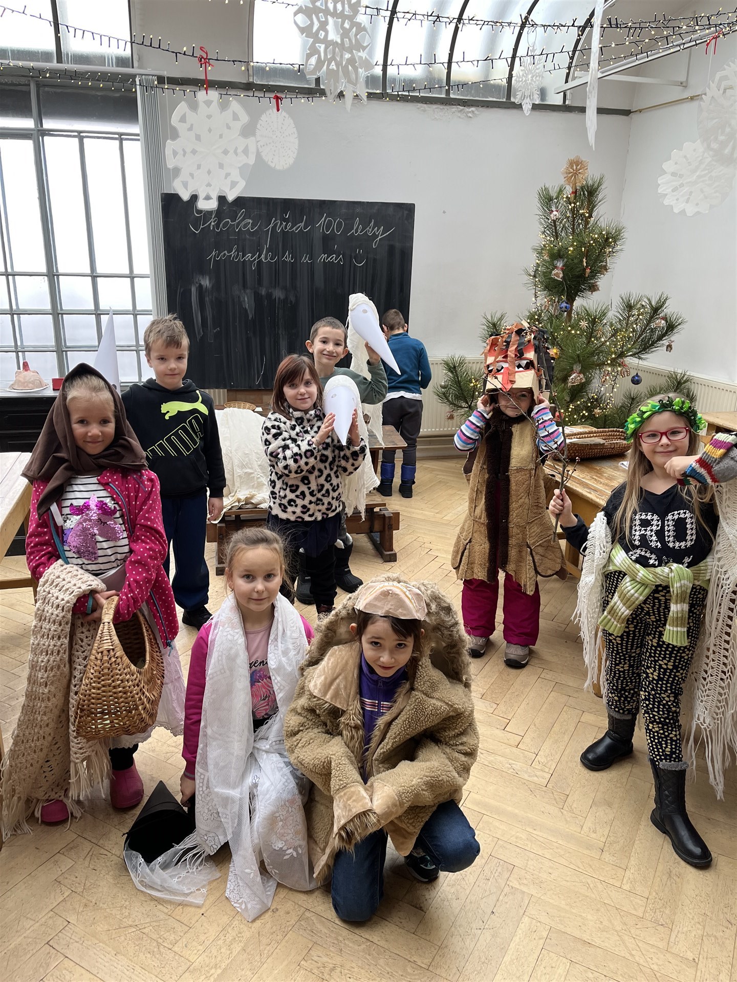 Program o adventu byl moc hezký! Prvňáčci postavili betlém, podívali se na hračky, o které si dříve psaly děti a vyzkoušeli si kostýmy Mikulášky, Barborky, Lucinky a spoustu dalších. 🎄❄️
