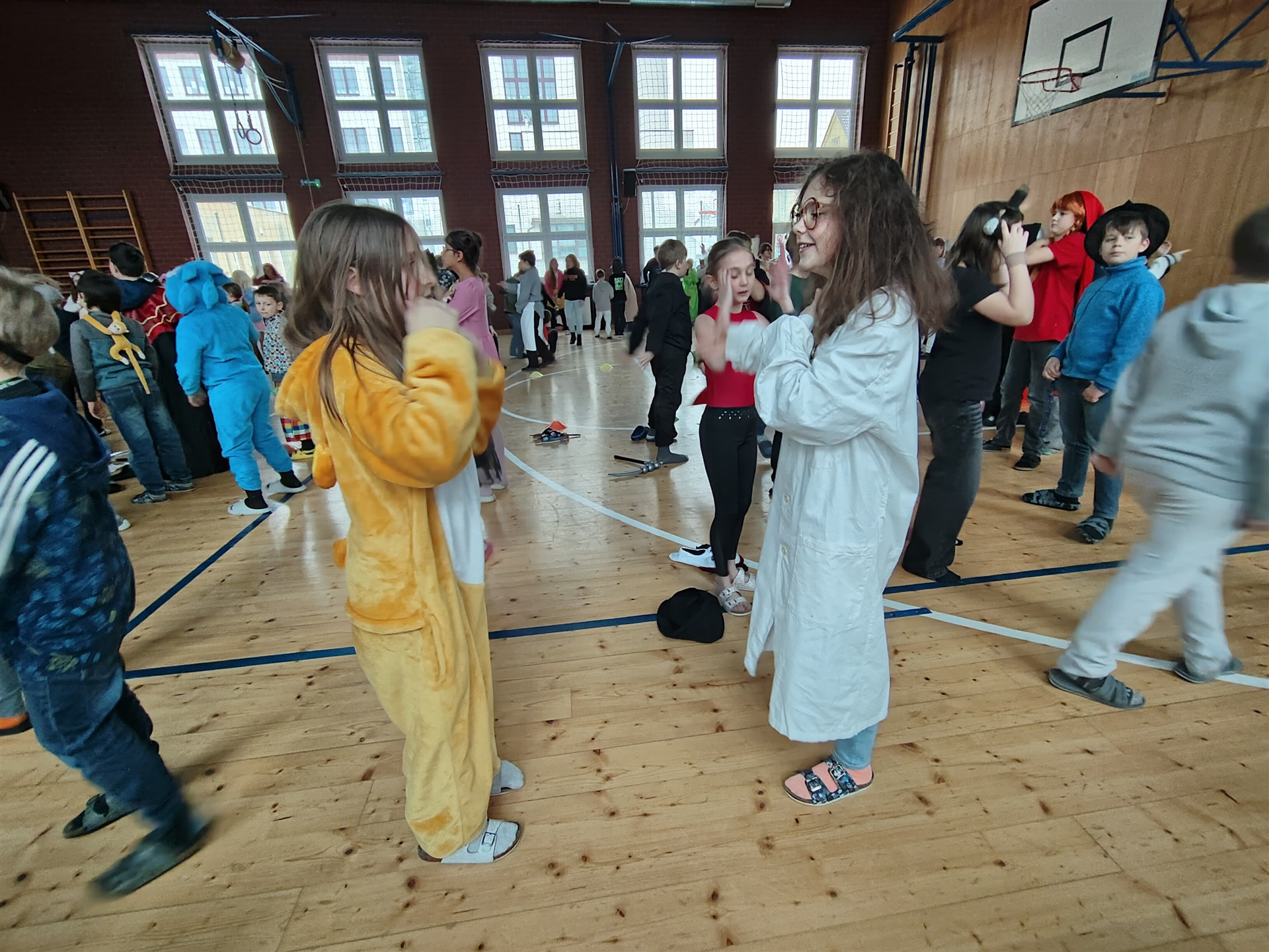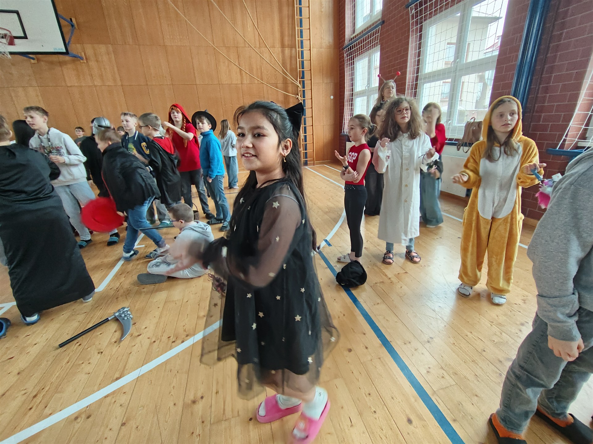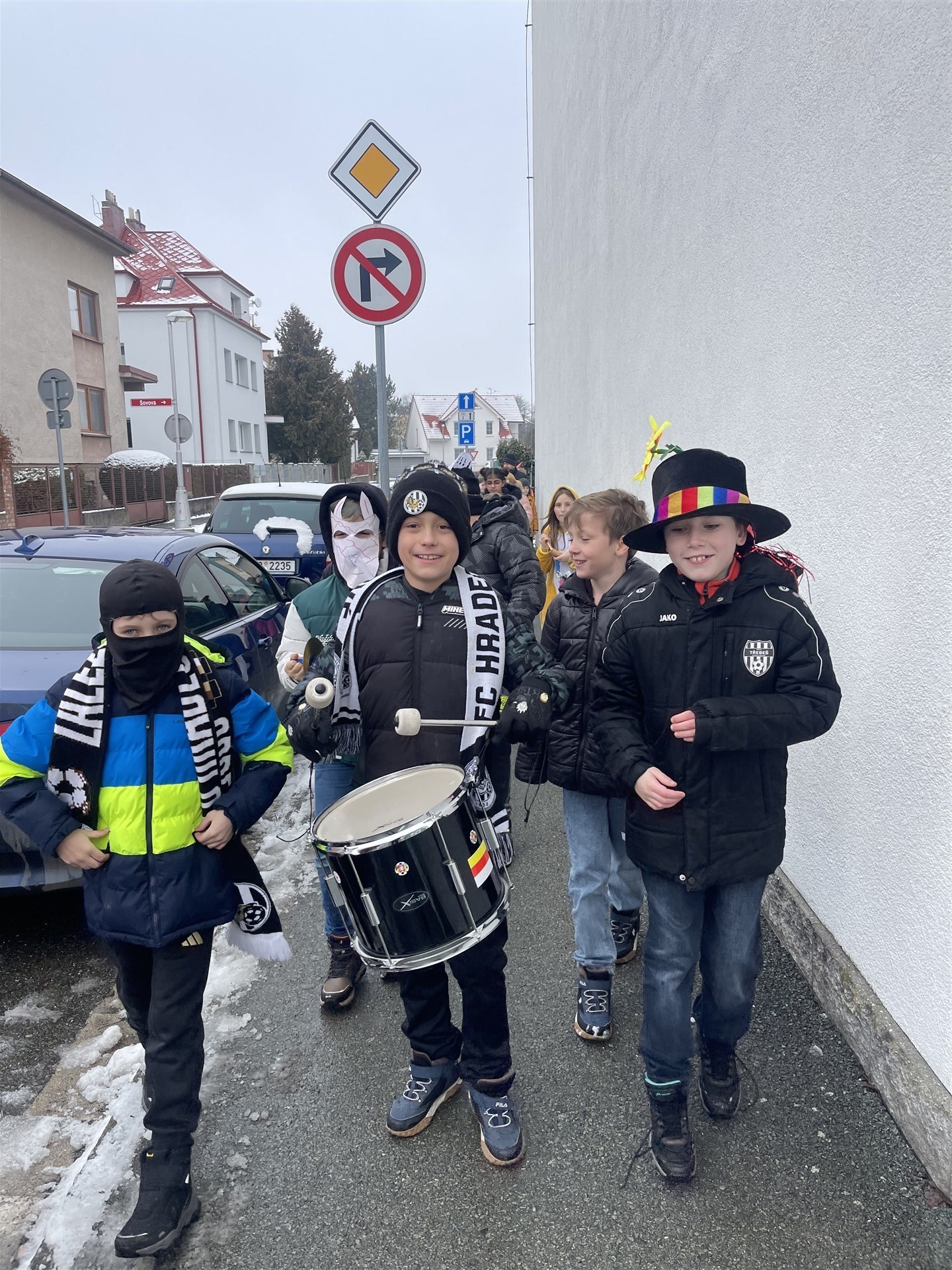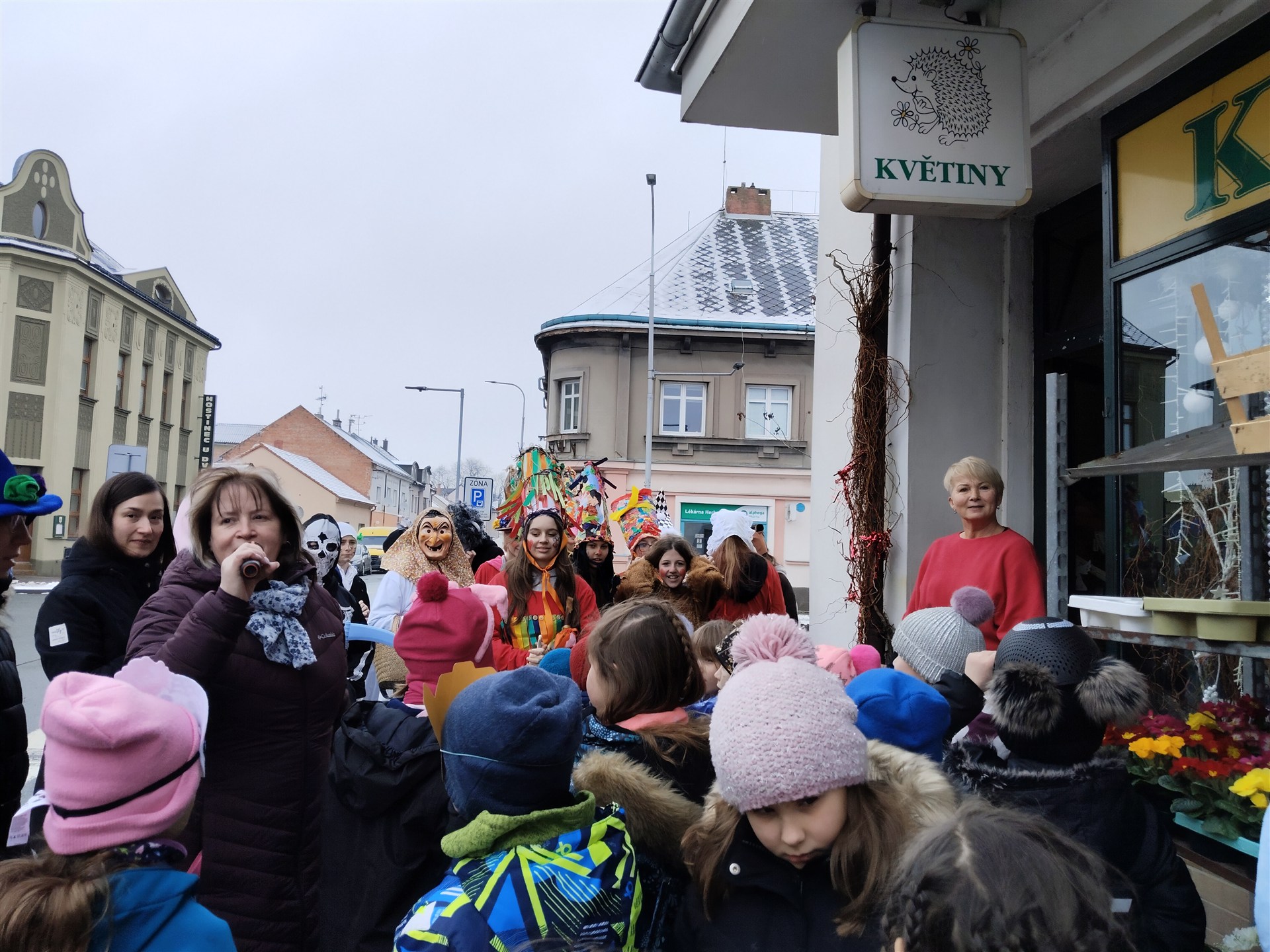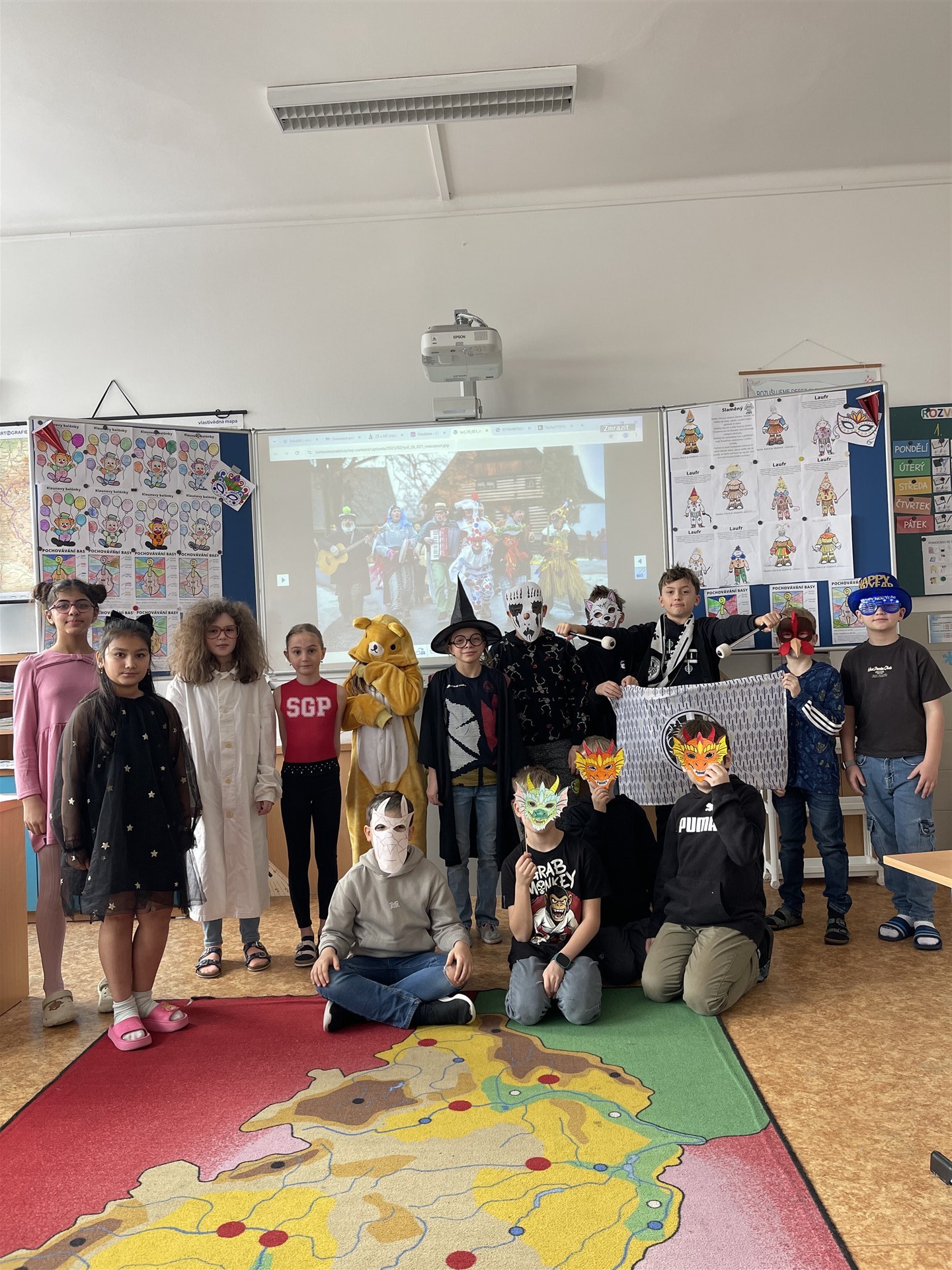 Toto úterý jsme se věnovali období masopustu, poznávali jsme lidové tradice a některé postavy z masopustního průvodu. Poté jsme se vydali do masopustního průvodu v okolí školy a vykoledovali dobroty z masa, ovoce i pečiva. Následoval program v tělocvičně, kde se tancovalo a soutěžilo.