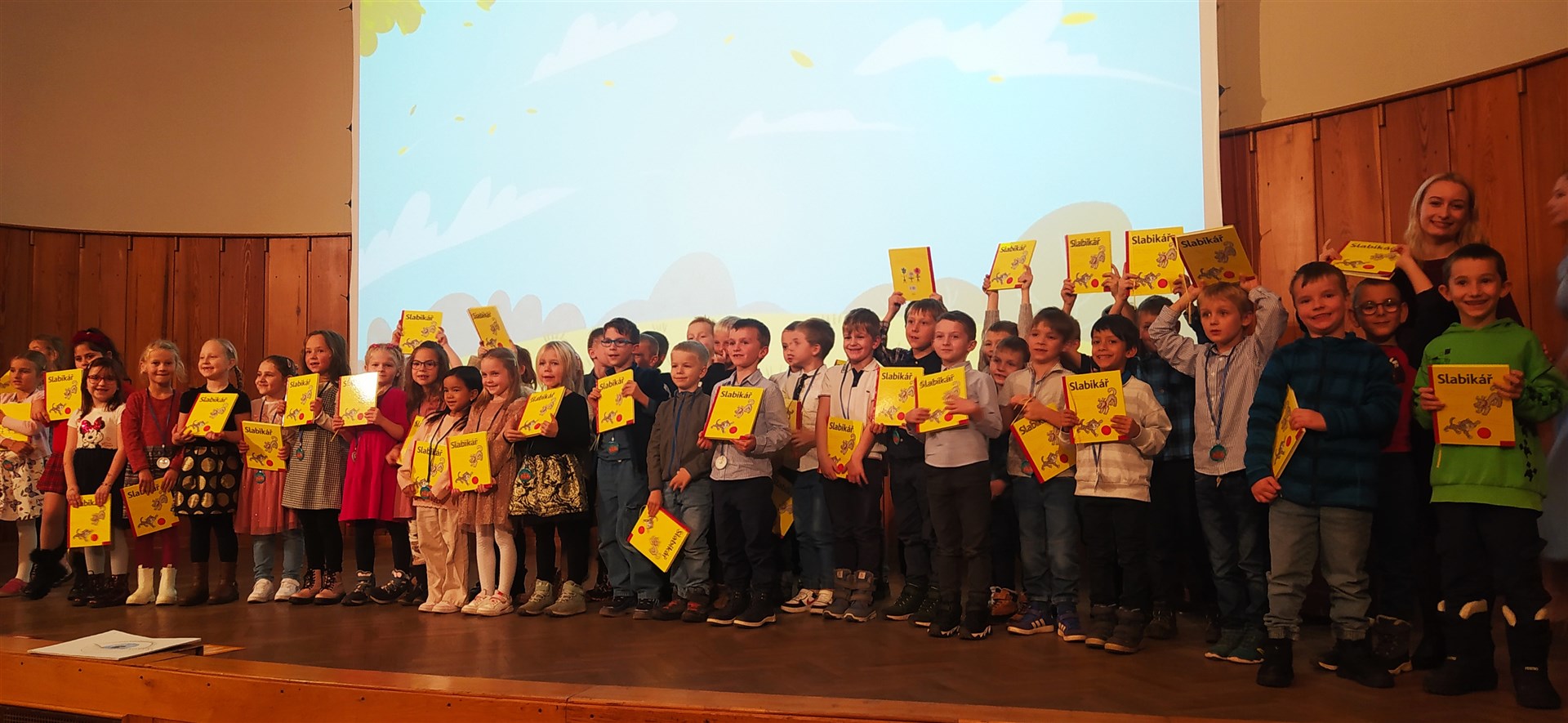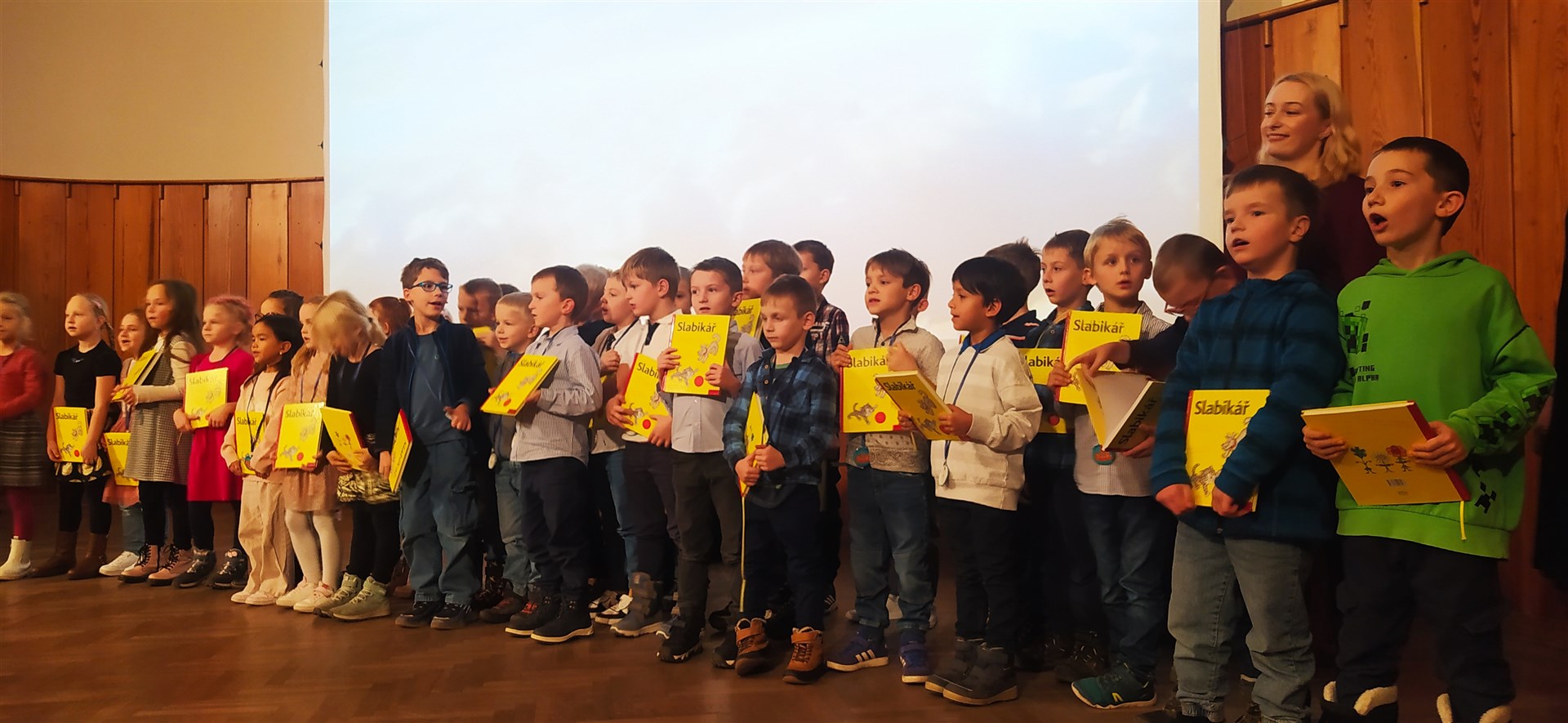Celým programem nás provedla paní učitelka Mgr. Jana Volfová, o úvodní scénku se postarali žáci šestých ročníků pod vedením paní ředitelky Mgr. Martiny Škultétyové. Teprve až když jsme pomohli žákům šestých tříd najít a vysvobodit naše Slabikáře 📖 od zlé čarodějnice, přišly na scénu naše třídní paní učitelky a slavnostně nám je předaly. Celou akci jsme poté ukončili společným zpěvem písně Kolik je na světě...