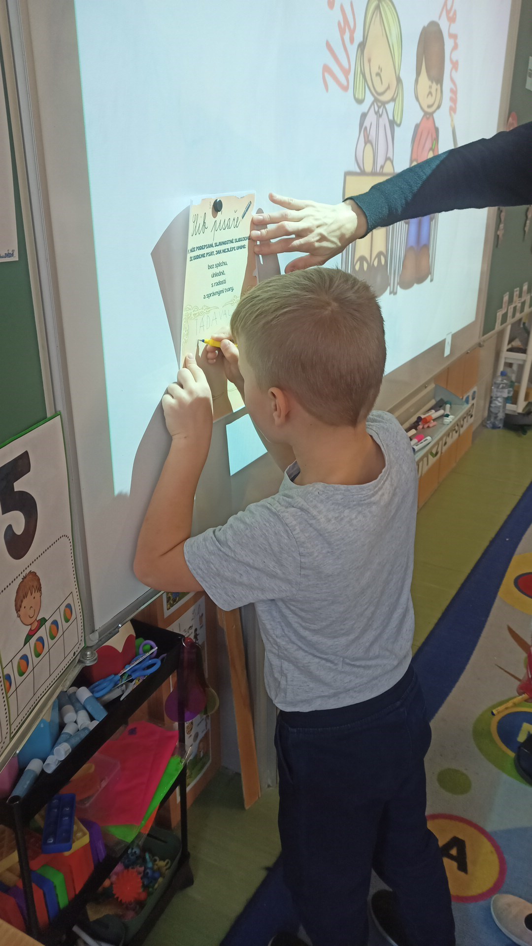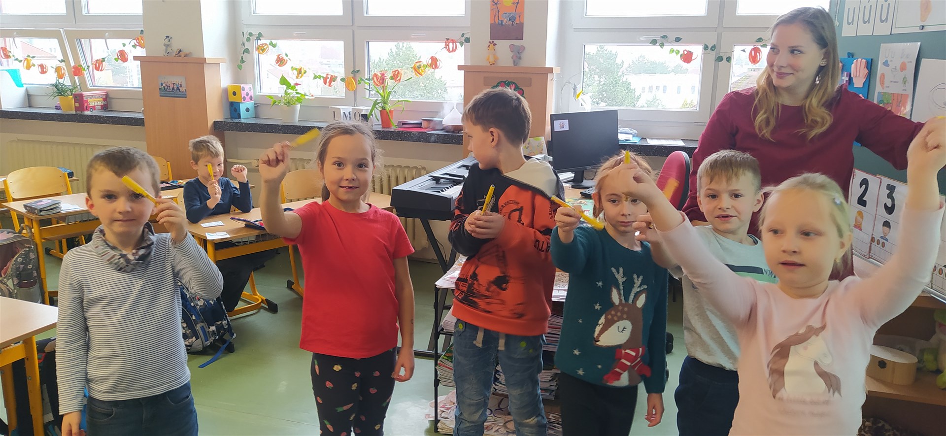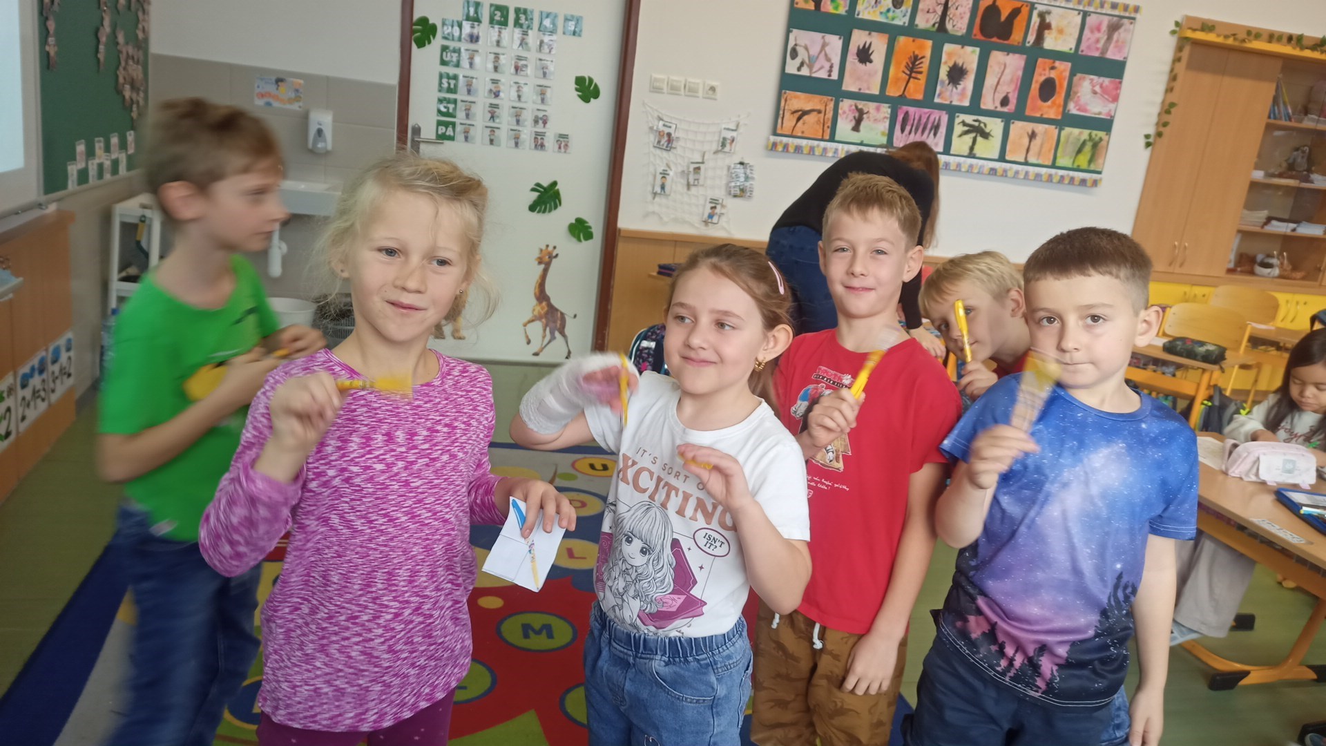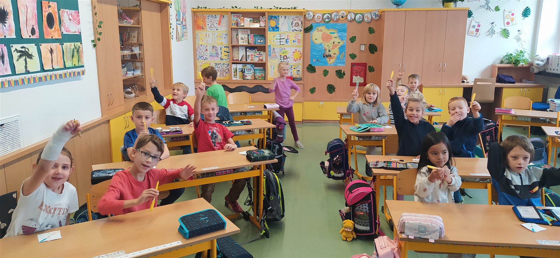 Paní učitelka nám připravila úkoly, které prověřily naši připravenost. Za splnění každého z nich jsme dostali kousek skládačky, která se nám na konci spojila v jeden obrázek, na kterém bylo pero. Zástupci z naší třídy šli poté za paní ředitelkou do ředitelny, kde ji poprosili, zda by nám pera předala.