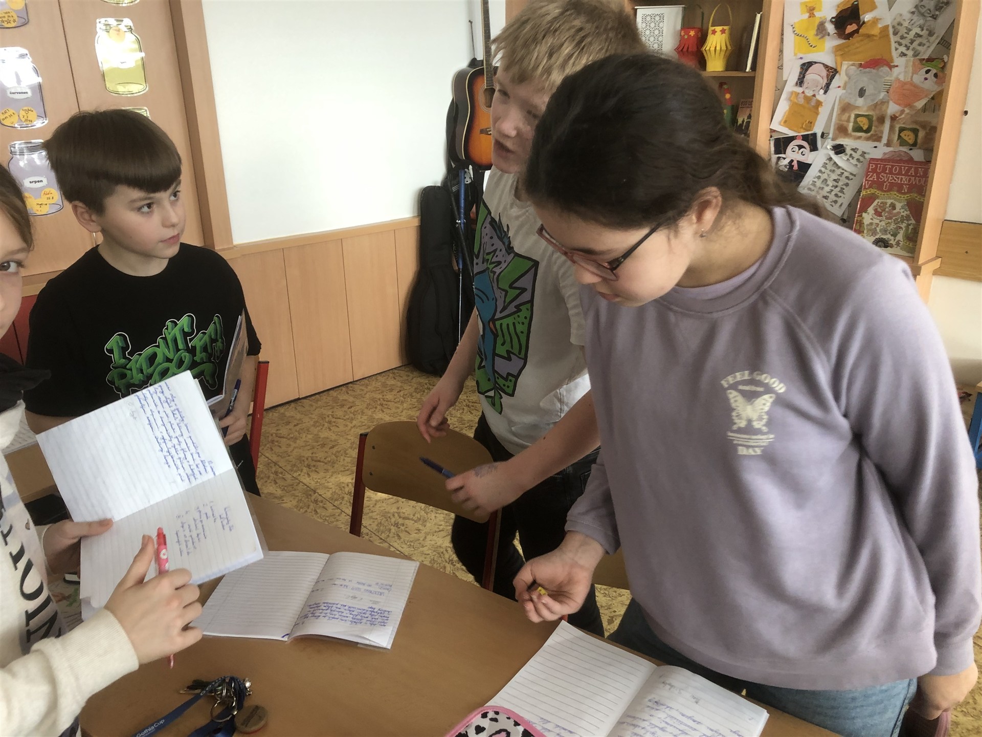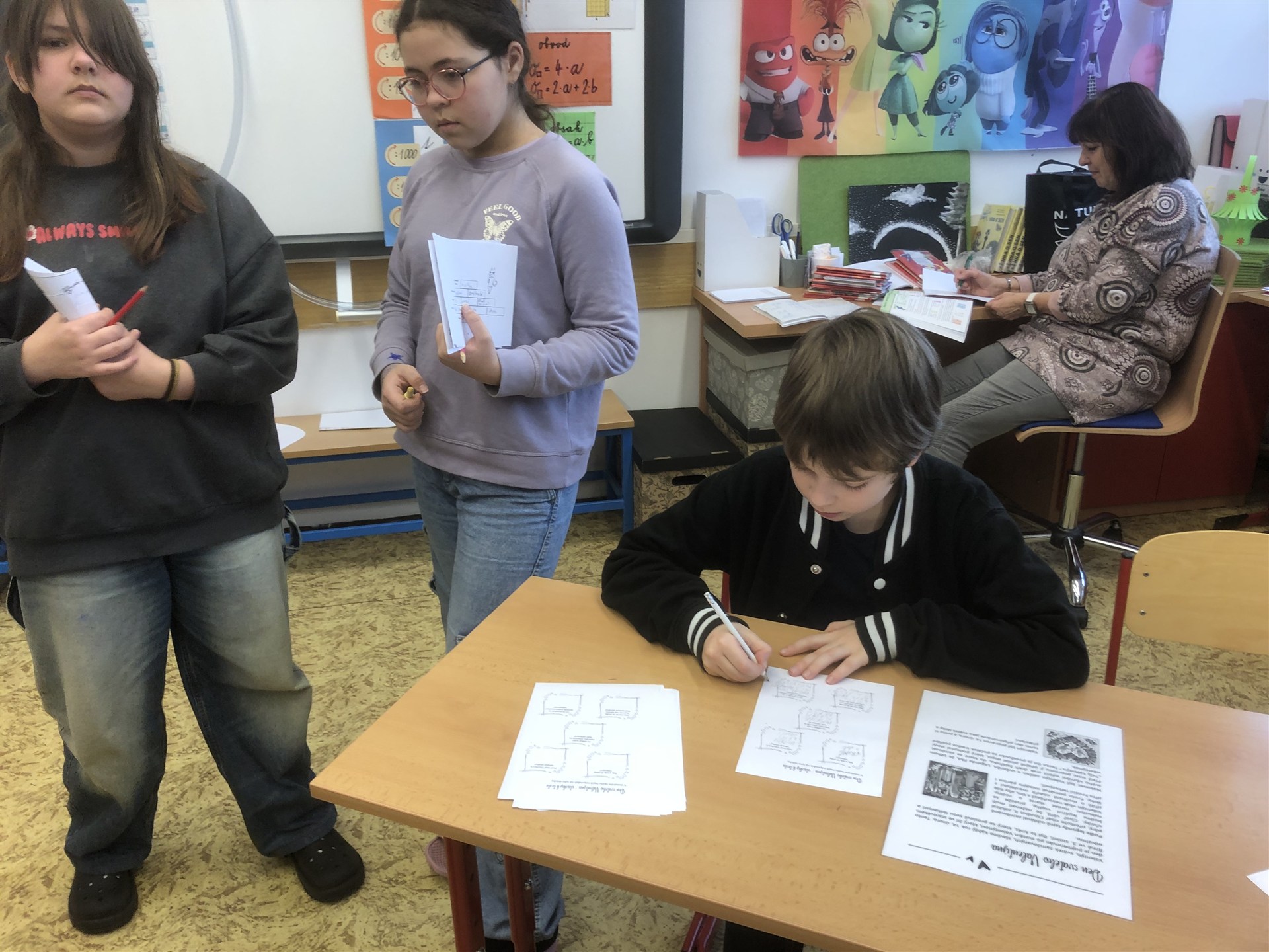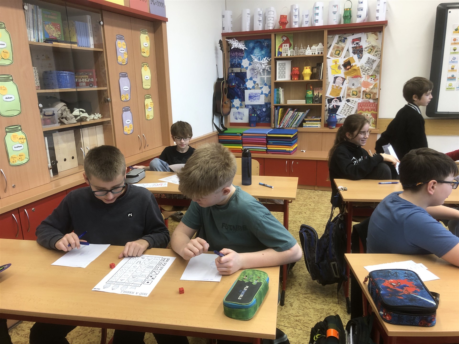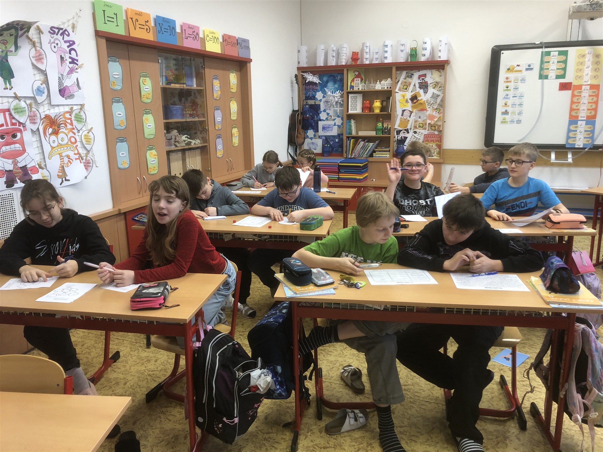 Při projektovém dnu jsme vyzkoušeli učení trochu jinak, napsali jsme si sloh podle návodu hoď kostkou, kde nám kostka určila postavy, místo i zápletku a u některých příběhů jsme se i dost nasmáli.