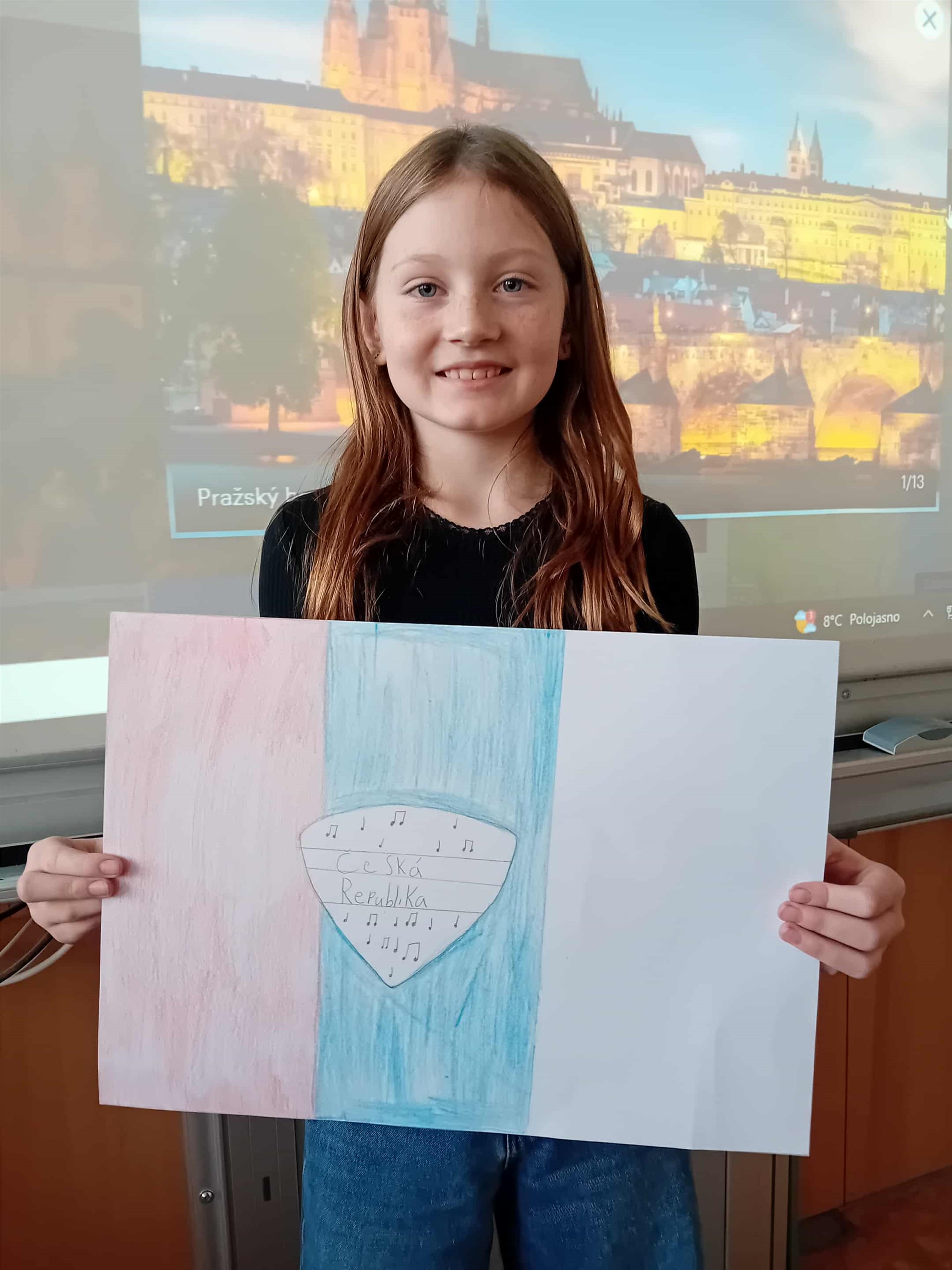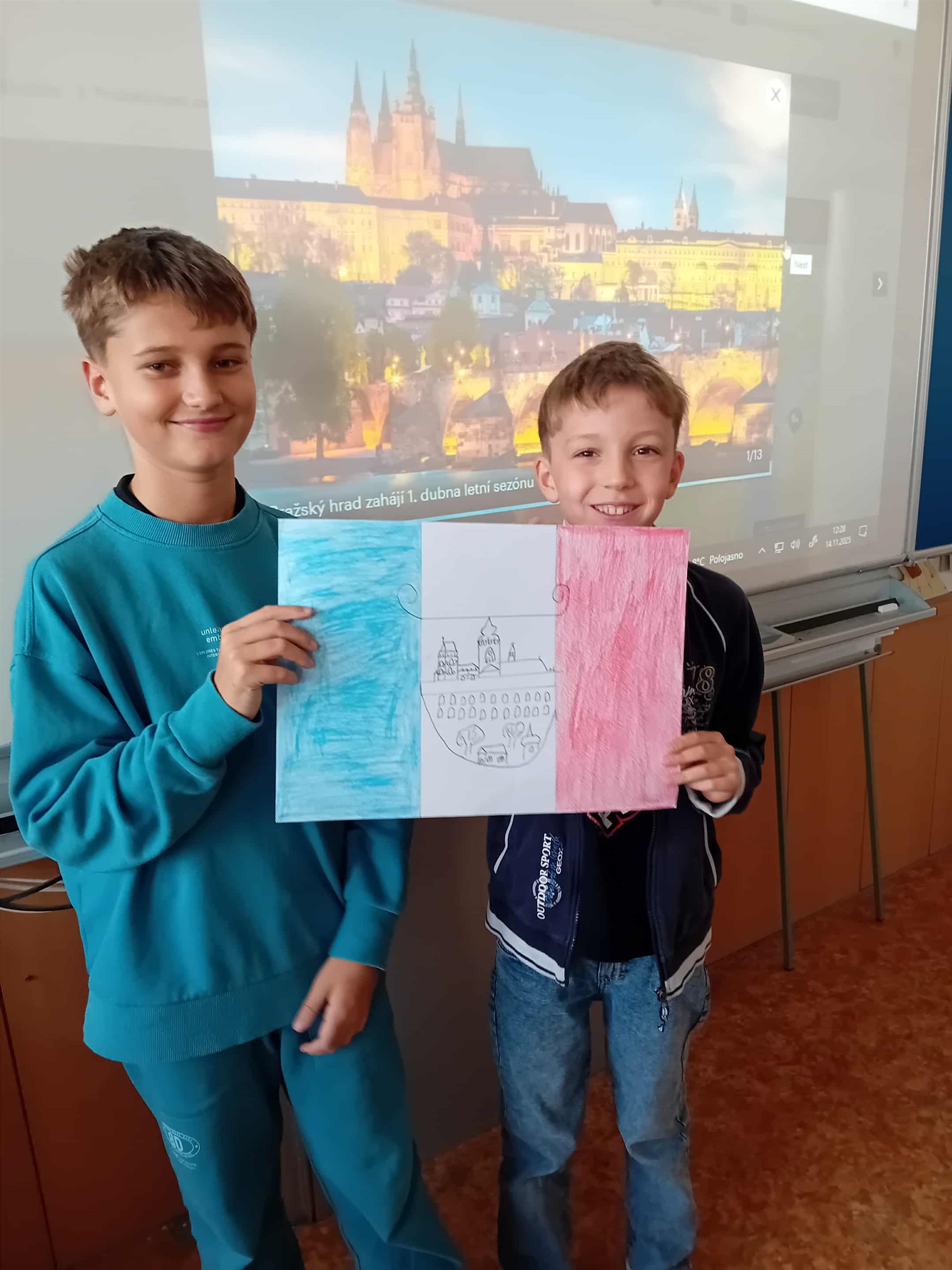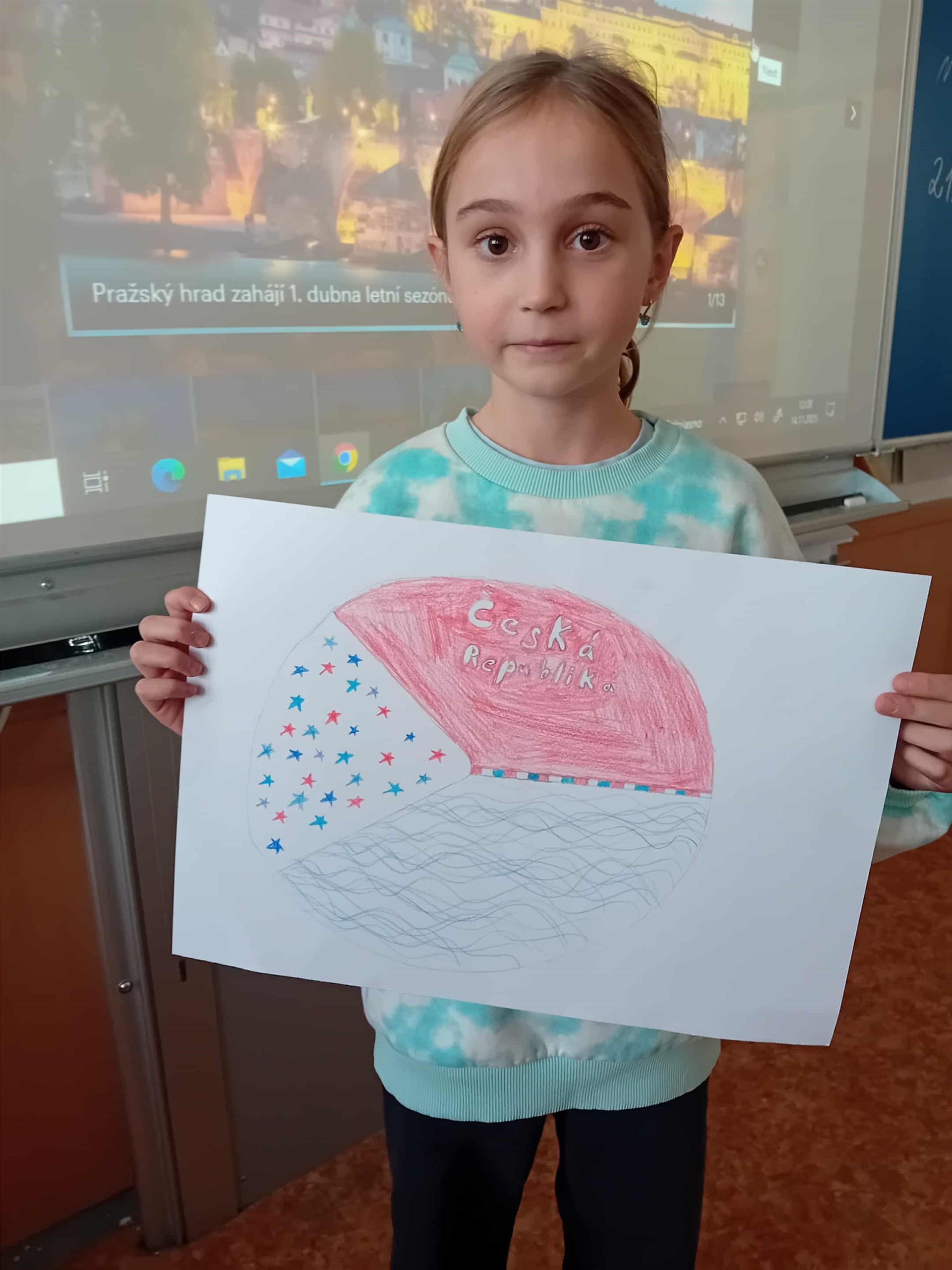 Děti zkoušely vytvořit při výtvarné výchově novou českou vlajku, dodržet měly barvy platné vlajky.