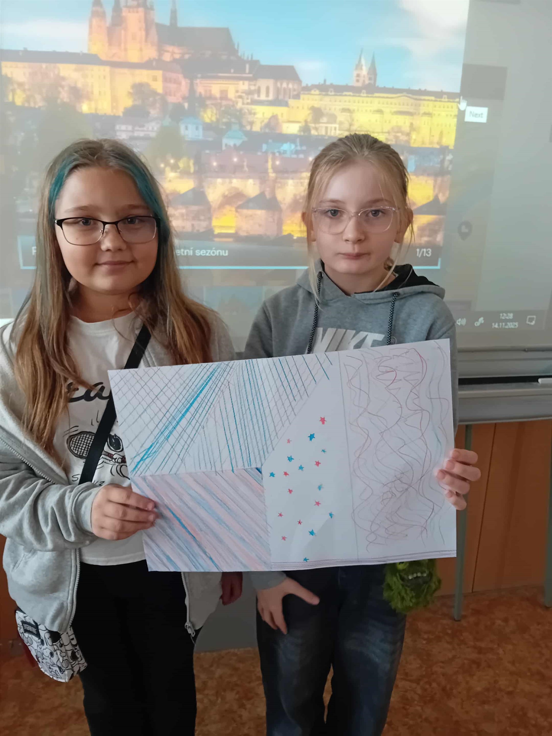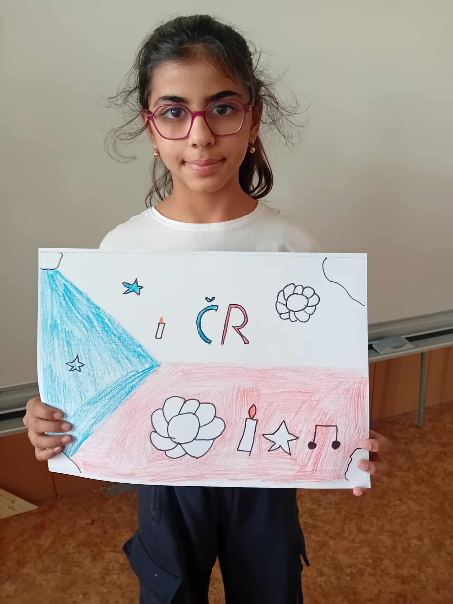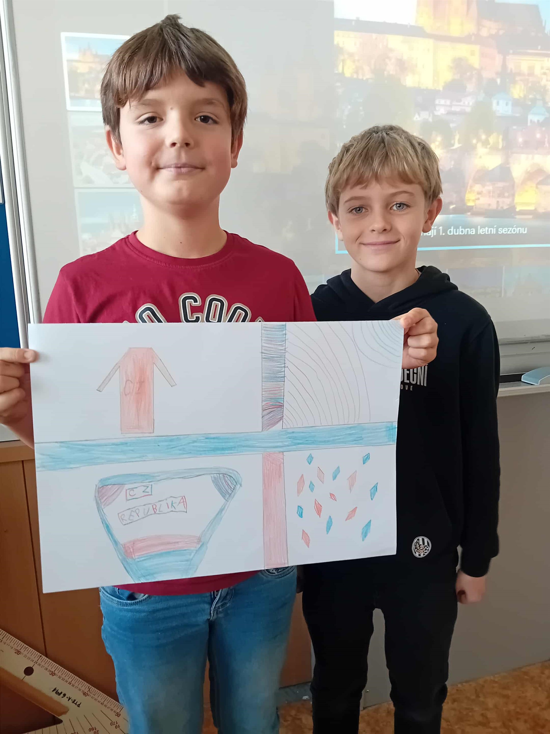 Děti zkoušely vytvořit při výtvarné výchově novou českou vlajku, dodržet měly barvy platné vlajky.