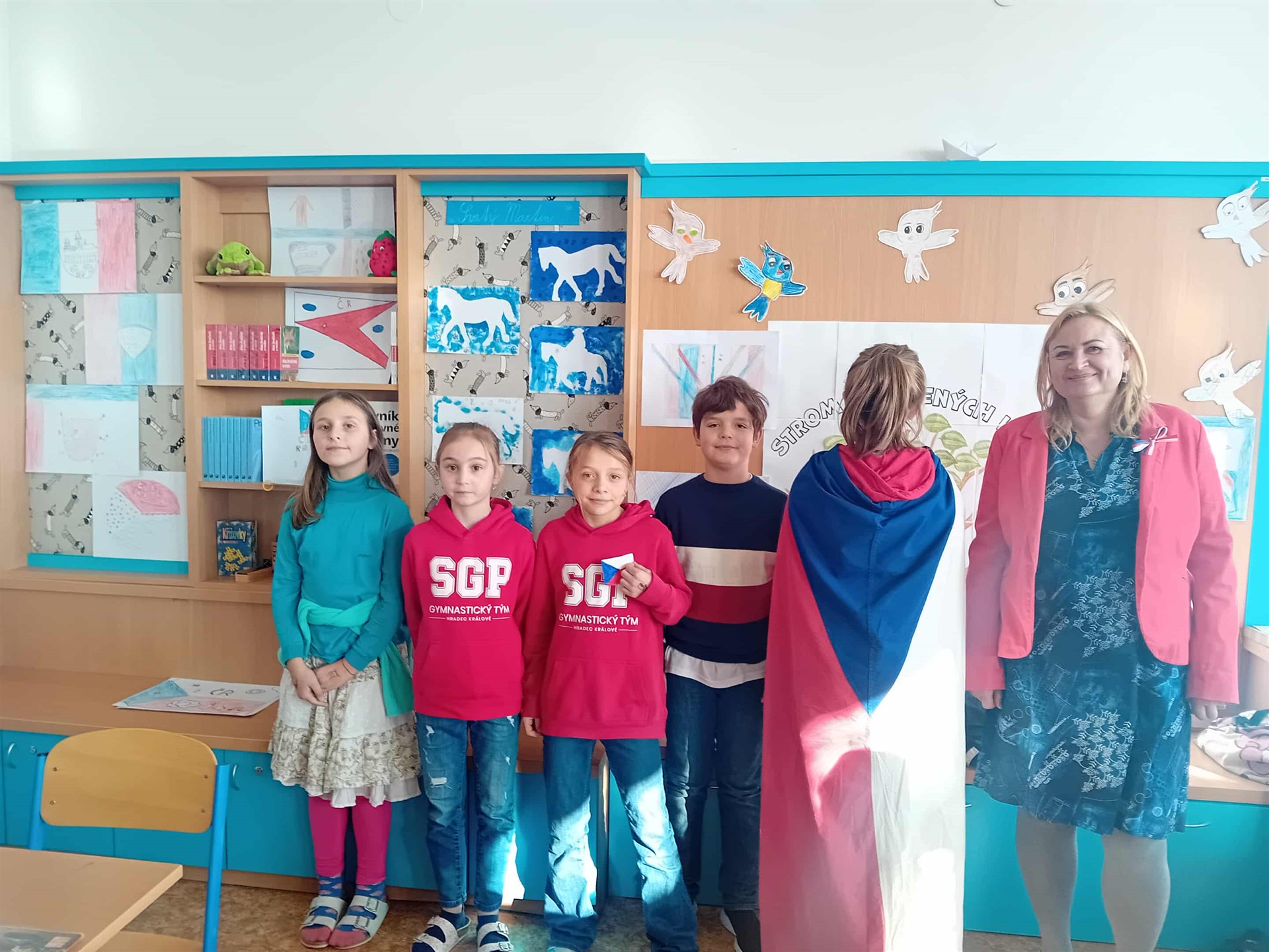 Děti zkoušely vytvořit při výtvarné výchově novou českou vlajku, dodržet měly barvy platné vlajky. Po státním svátku 17. 11. přišli někteří do školy v barvách naší vlasti.